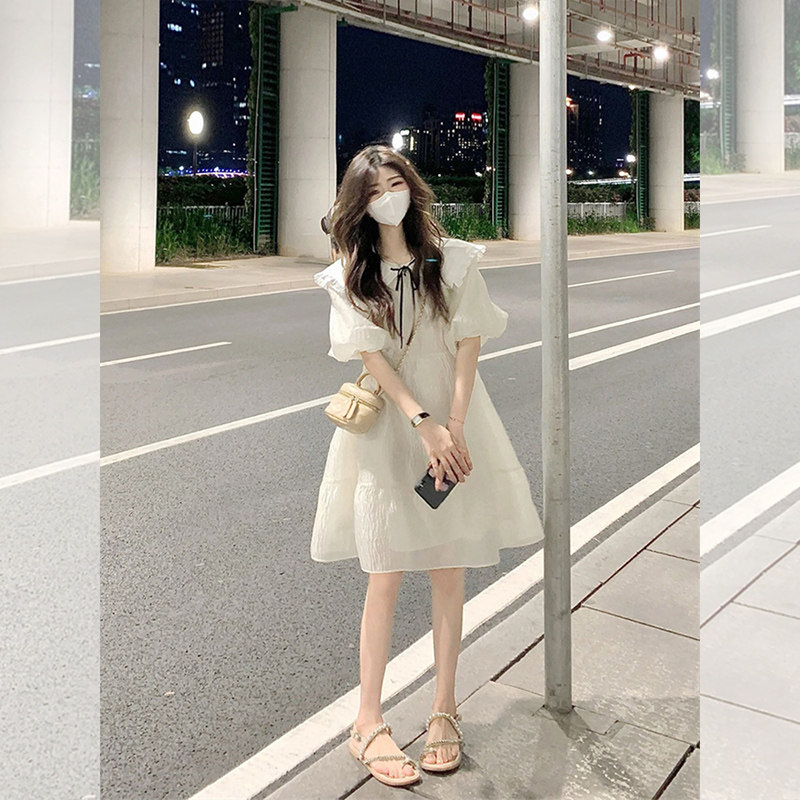 フリル袖とリボンディテールが存在感のあるデザインを際立たせ、周囲の視線を集める愛らしさを演出します。