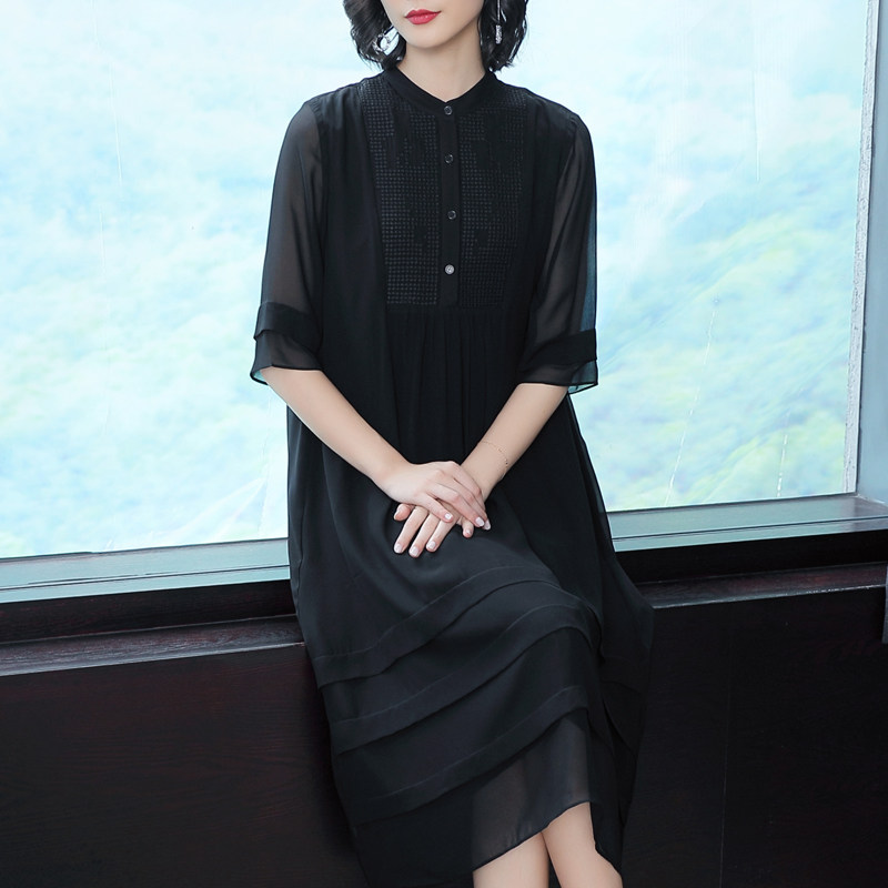 人気のお呼ばれドレスおすすめの襟付きシャツ風デザインで華やかな印象を与え周囲から褒められるロング丈ワンピース