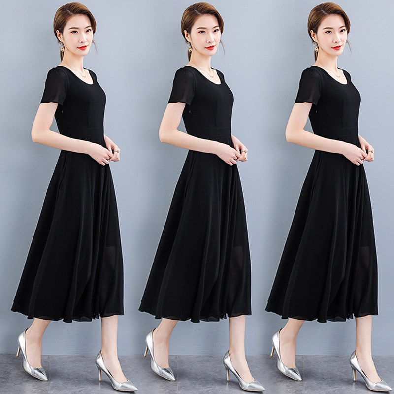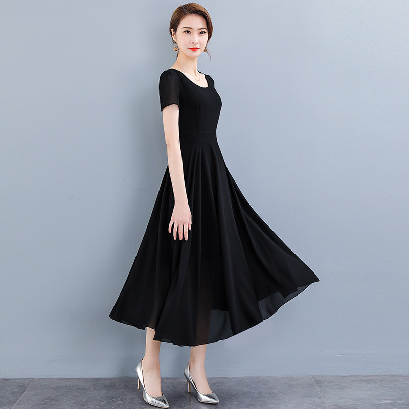 ミディアム丈のワンピースなので、上品さと動きやすさを兼ね備えています。