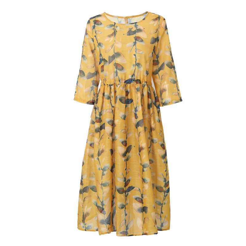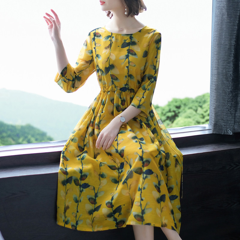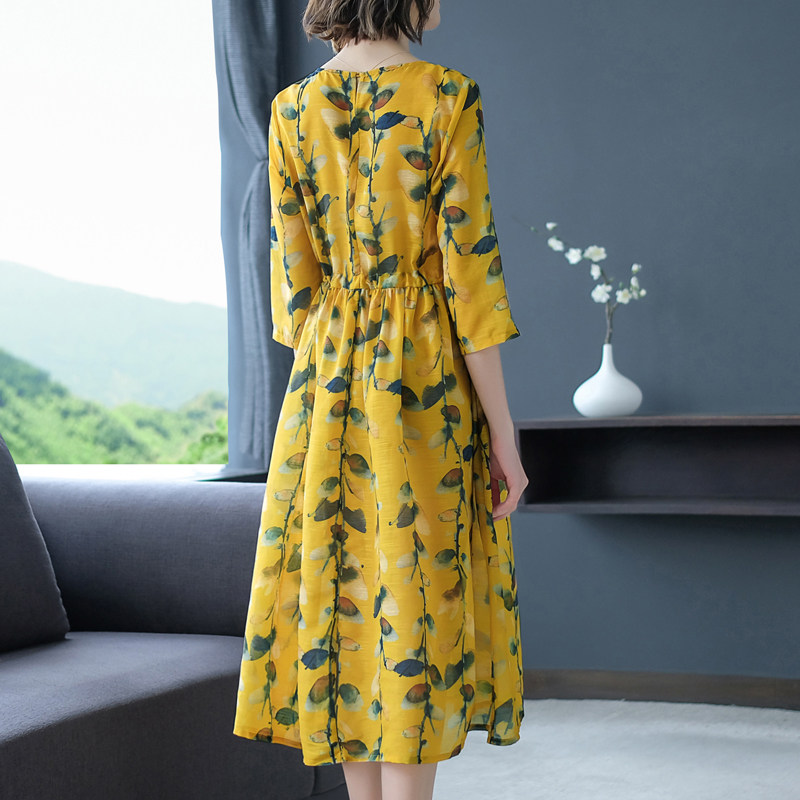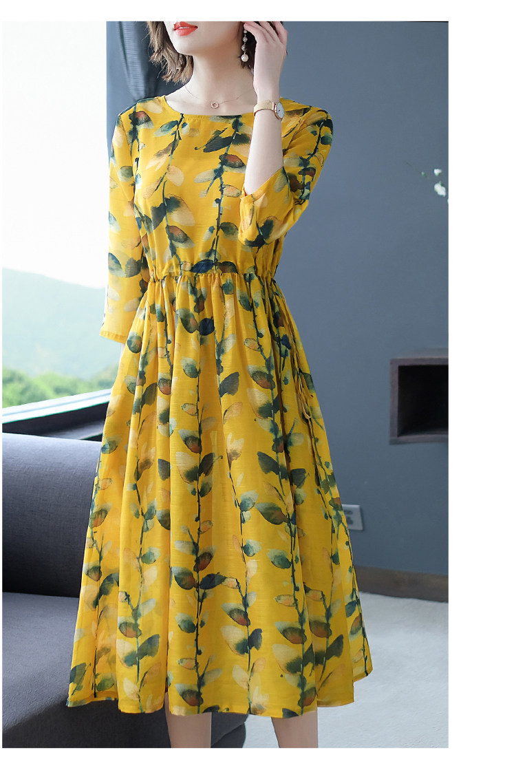 七分袖のデザインで二の腕をさりげなくカバーし、膝下丈のミモレ丈スカートが大人の品格を漂わせます。