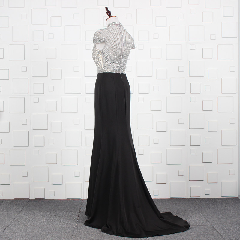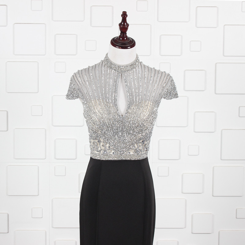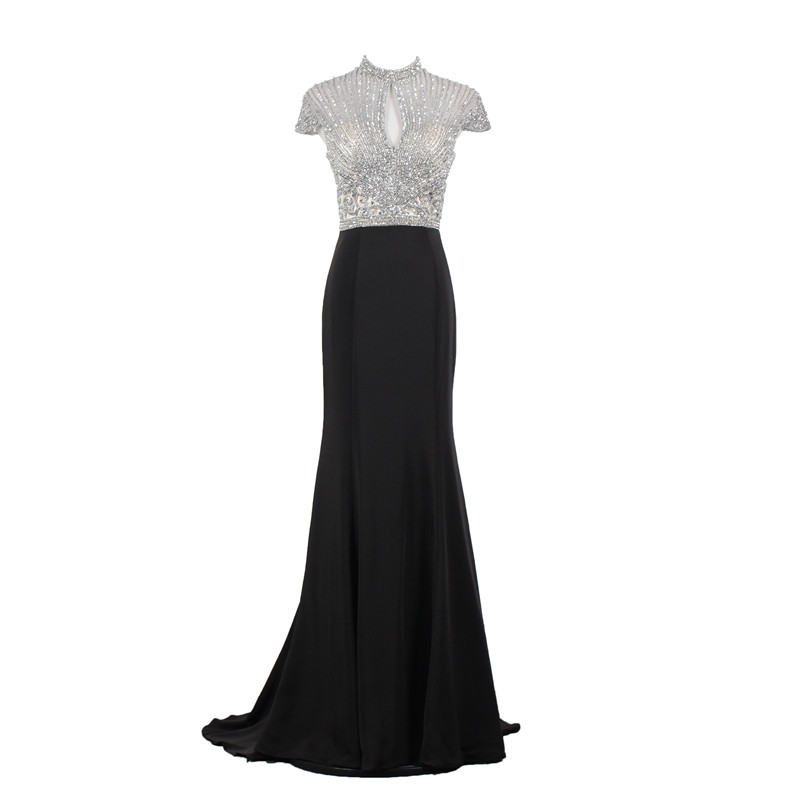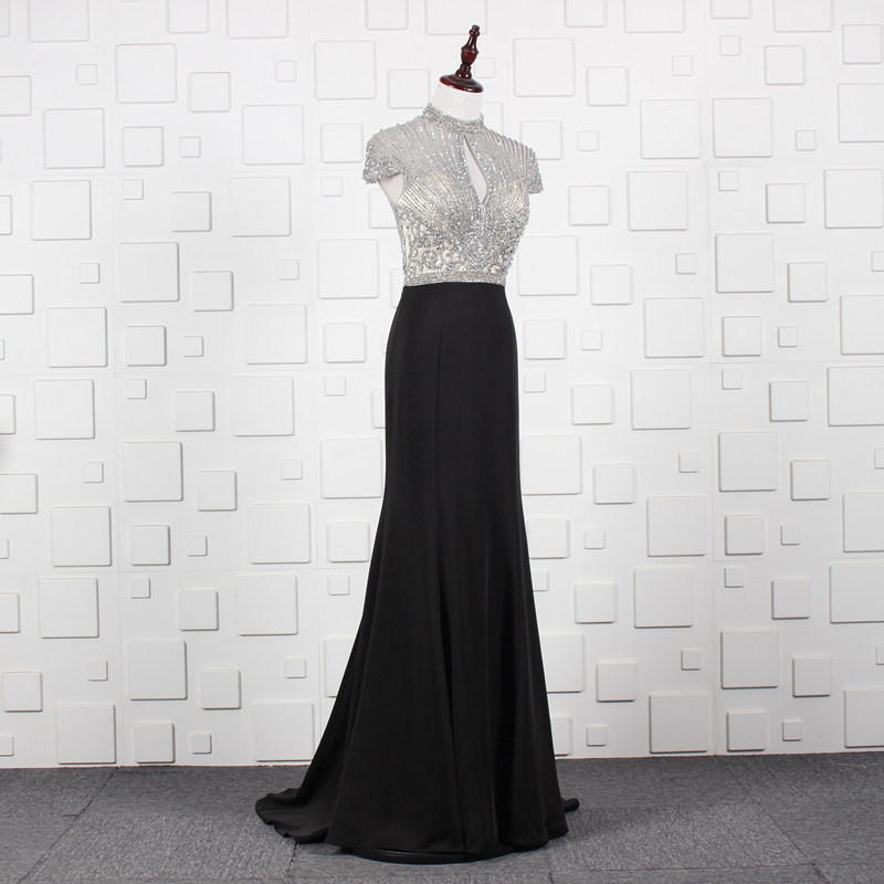 ハイネックデザインと中央のキーホール開きが上品なセクシーさを引き立てます。