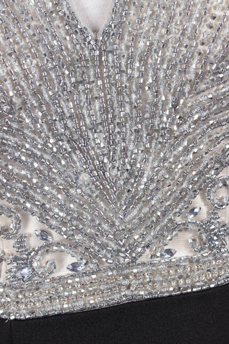 胸元に贅沢にあしらわれたビジュー刺繍が華やかさを演出するパーティードレスです。
