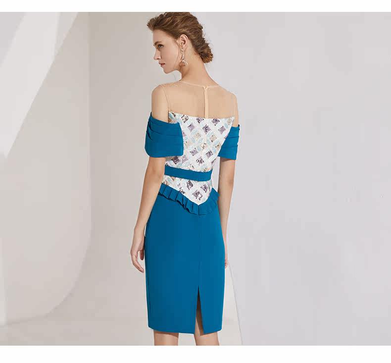 すっきりとしたタイトシルエットのワンピースで、結婚式や二次会、パーティーシーンを華やかに彩ります。