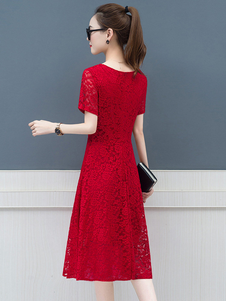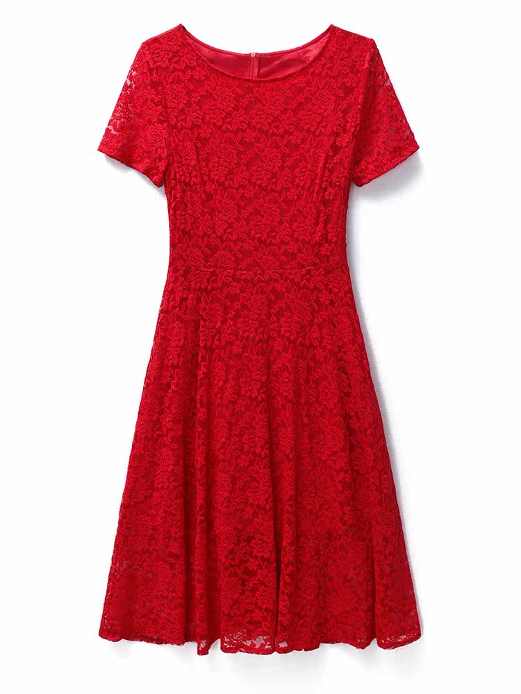 華やかな総レース素材が美しいパーティードレスです。 繊細なレース地が全面に施され、上品で女性らしい印象を演出します。 半袖デザインで程よい肌見せが叶い、膝丈のフレアシルエットが体型をカバーしながら優雅に揺れます。 結婚式やお呼ばれ、お食事会など特別な日に活躍するワンピースです。 一枚でサマになる華やかさで、大人の女性に相応しい上質な装いが完成します。