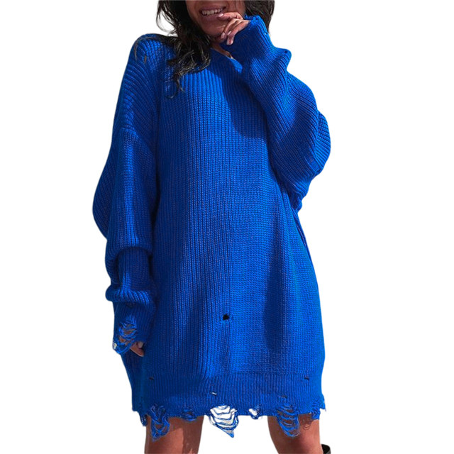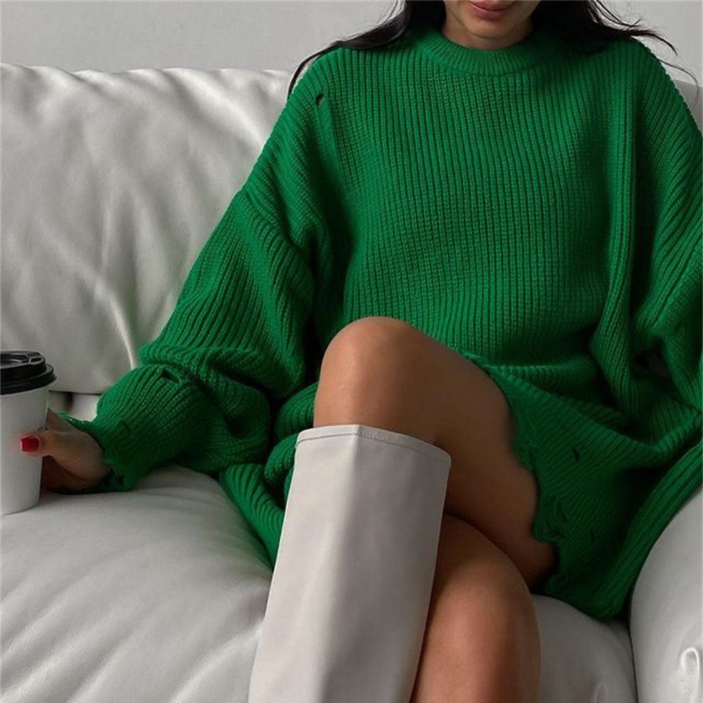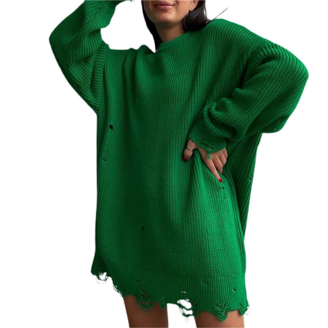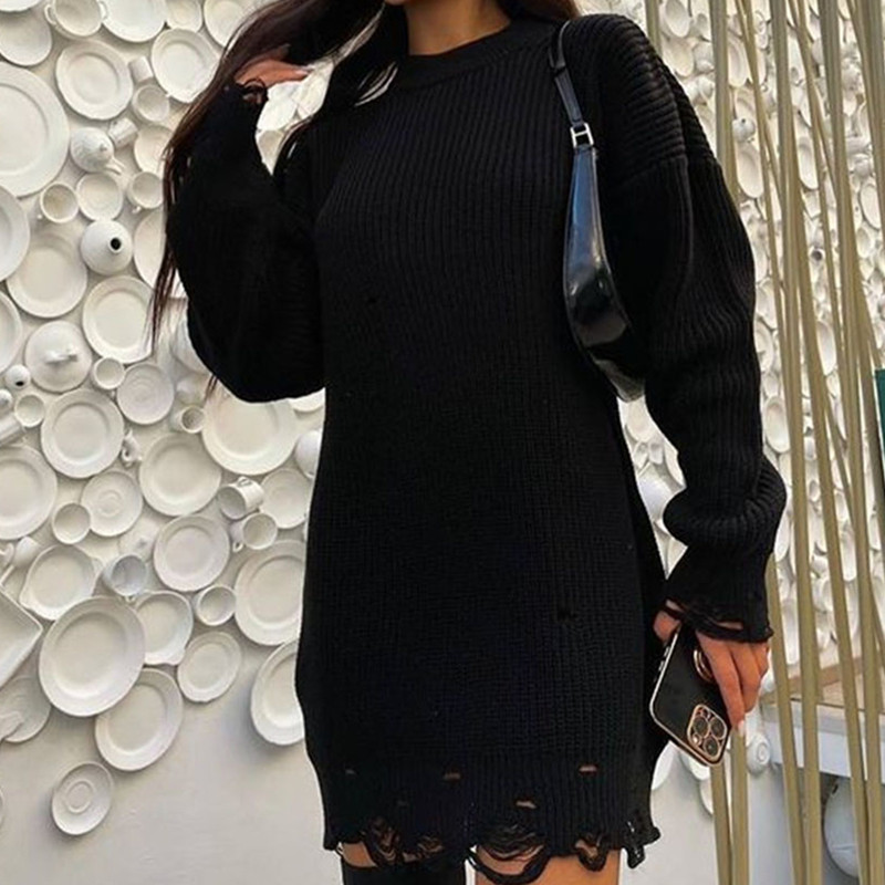 ゆったりとしたシルエットが魅力的なニット素材のワンピースです。 裾と袖口にあしらわれたダメージ加工がこなれた印象を演出します。 程よいミニ丈で脚長効果も期待でき、ロングブーツとの相性も抜群です。 リラックス感がありながらもおしゃれ見えするカジュアルドレスは、デイリー使いからお出かけまで幅広く活躍します。 一枚でサマになる存在感のあるアイテムです。