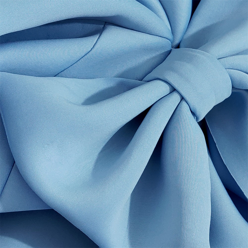 肩の立体的なフリルとウエストのリボンベルトがアクセントになり、女性らしいシルエットを演出します。