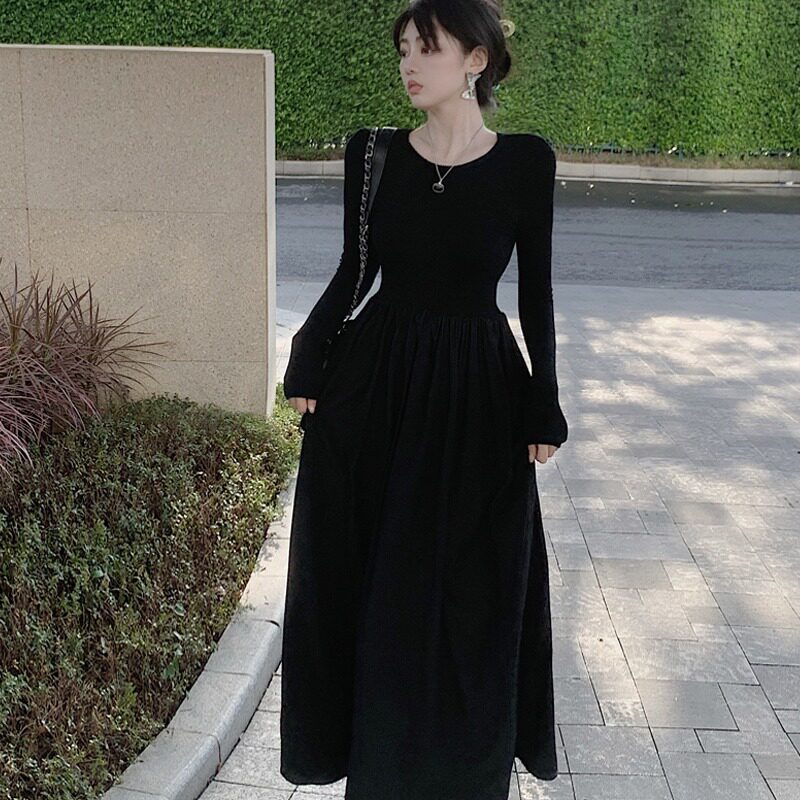 上品な長袖デザインとたっぷりとしたギャザースカートが魅力のワンピースです。 身頃はすっきりとしたシルエットで、切替位置から広がるボリューム感のあるスカートが女性らしい印象を演出します。 足首まで届くロング丈で、カジュアルドレスとしても活躍する一枚です。 デイリーからお出かけまで幅広いシーンで着回せる万能アイテムです。