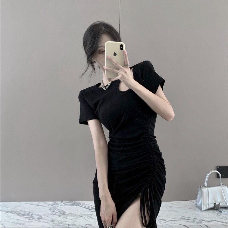 カジュアルドレスとしても活躍する半袖ワンピースです。 サイドにギャザーを寄せたドロストデザインが特徴で、立体的なシルエットと程よい肌見せが女性らしさを演出します。 身体のラインを美しく見せるタイトなシルエットで、スタイルアップ効果も抜群です。 柔らかな素材感で着心地も良く、普段使いからお出かけまで幅広いシーンでお楽しみいただけます。