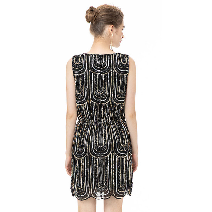 幾何学模様のビーズ刺繍が全面に施された華やかなワンピースです。