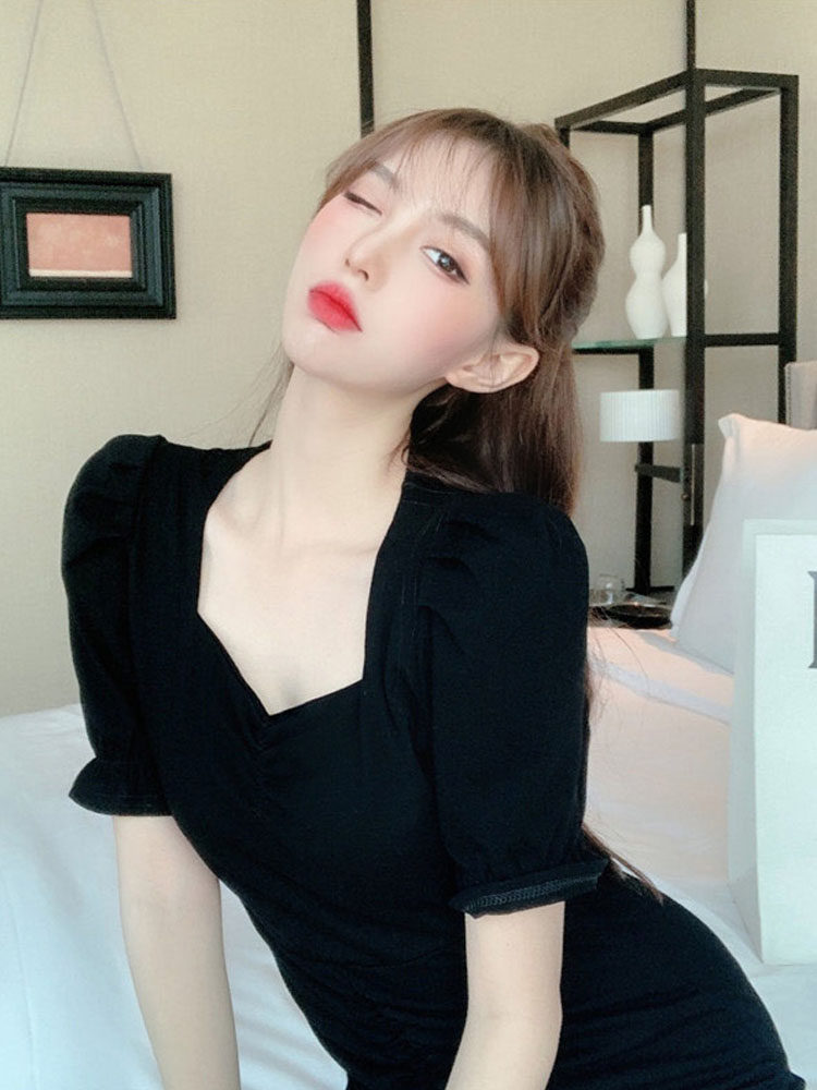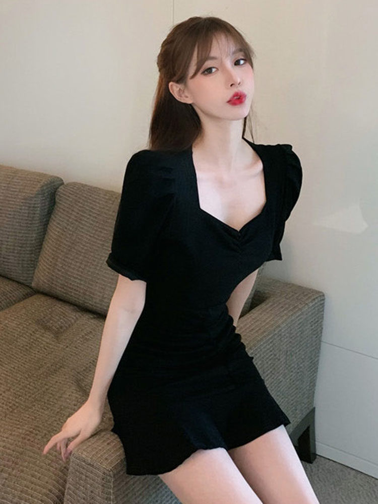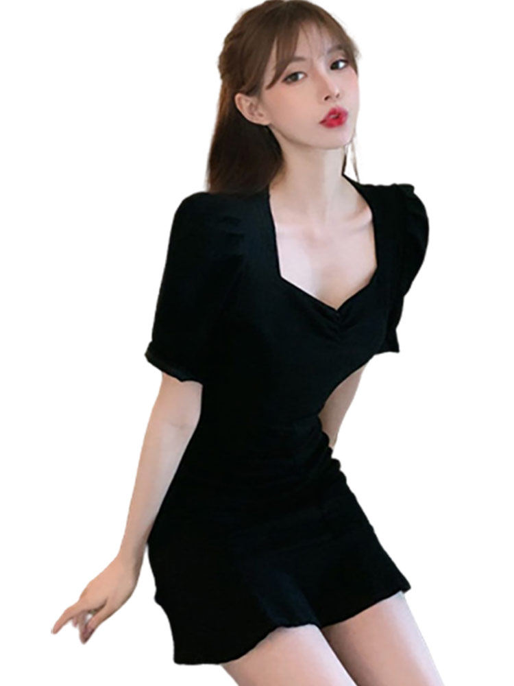 ふんわりとしたパフスリーブがフェミニンな印象を演出するカジュアルドレスのワンピースです。 ハート型のネックラインが女性らしさを引き立て、ウエストのシャーリングデザインがスタイルアップ効果を発揮します。 裾の波打つフリルが動きのある可愛らしさをプラスし、どんなシーンでも華やかな装いを楽しめます。 デートやお出かけにぴったりの一枚で、一着持っているだけでコーディネートの幅が広がります。