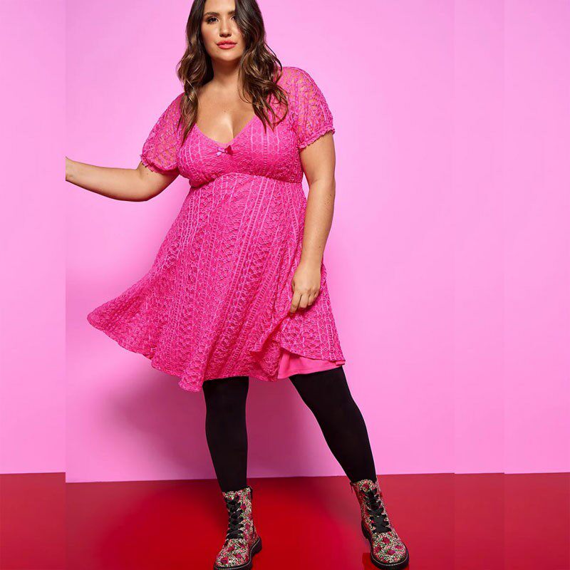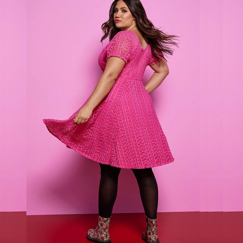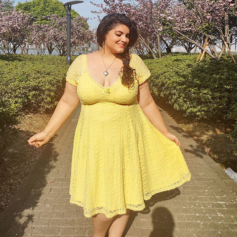 柔らかな総レース素材が上品な印象を与えるカジュアルドレスです。