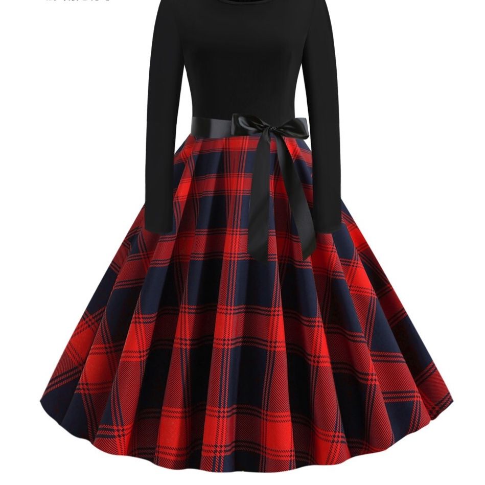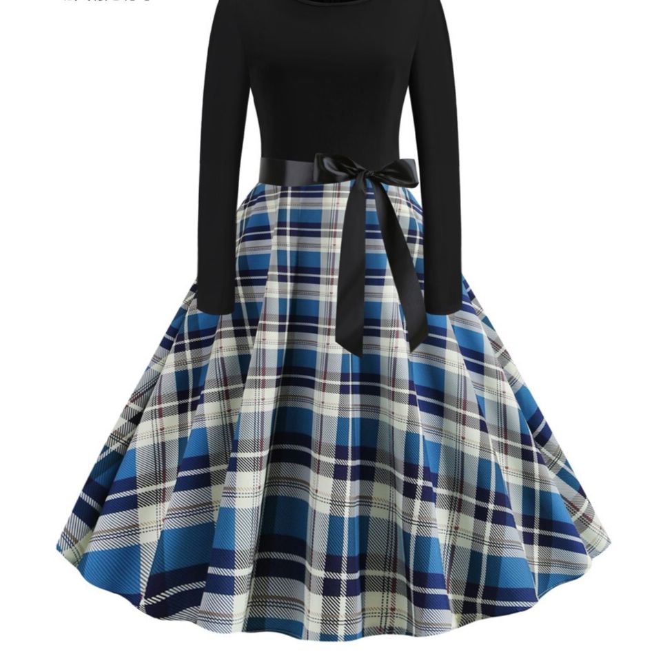 上品な無地トップスとチェック柄のスカート部分を組み合わせたカジュアルドレスのワンピースです。 ウエストのリボンベルトがアクセントとなり、女性らしいシルエットを演出します。 裾に向かって広がるふんわりとしたスカートラインが華やかな印象を与え、デイリーからお出かけまで幅広いシーンで活躍します。 長袖デザインで季節の変わり目にも対応できる便利な一着です。