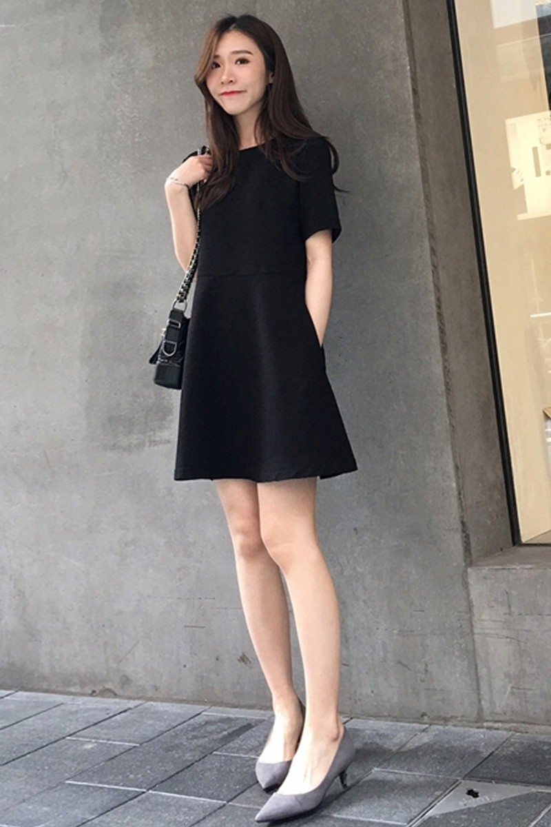 すっきりとした丸首のデザインで、パーティードレスとしても普段使いとしても活躍する万能な一着です。
